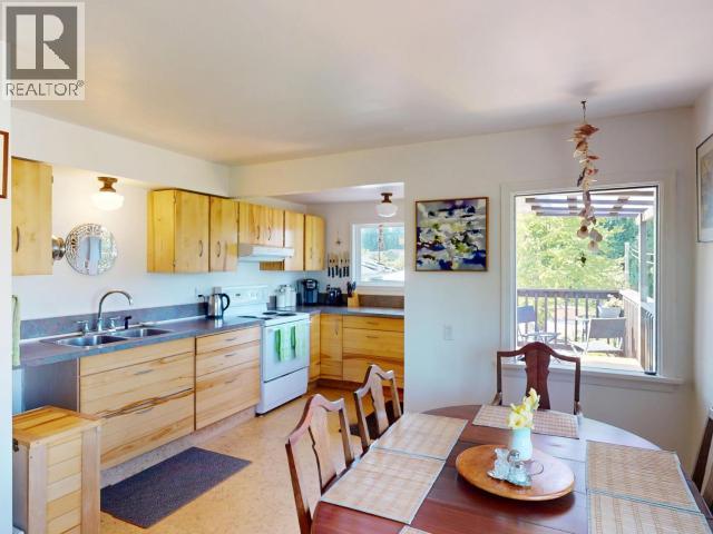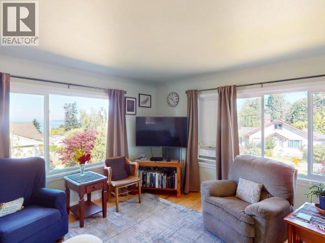 Welcome to this great, well-maintained home in a highly desirable neighborhood! Nestled on a quiet street just one block from the ocean, this property sits on an expansive 0.4 acre lot with convenient lane access. This home maintains its original charm while offering modern comforts. The main floor features coved ceilings, beautiful birch flooring, and an updated kitchen and bathroom, creating a warm and inviting living space with ocean views. The spacious downstairs has three bedrooms, one bathroom, and a former kitchen, offering excellent suite potential. The large, private backyard offers endless possibilities with gardens, fruit trees, play areas, and even room for campouts. The wired garage/shop is ideal for hobbyists, and there's potential for a carriage home. Enjoy outdoor living with two decks: one off the kitchen designed for privacy, and another near a fish pond and spacious garden--perfect for relaxing or entertaining guests. (id:4069)